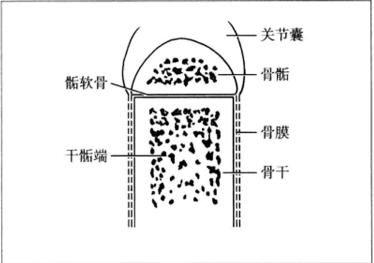 骺软骨:为介于骨骺与骨干之间的软骨板,有生长能力 ,骨骼由此生长。