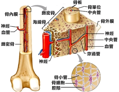 骨由有机质和无机质组成,有机质主要是胶原纤维和黏多糖蛋白,使骨有弹性和韧性,无机质主要是碱性磷酸钙,使骨坚硬挺实。