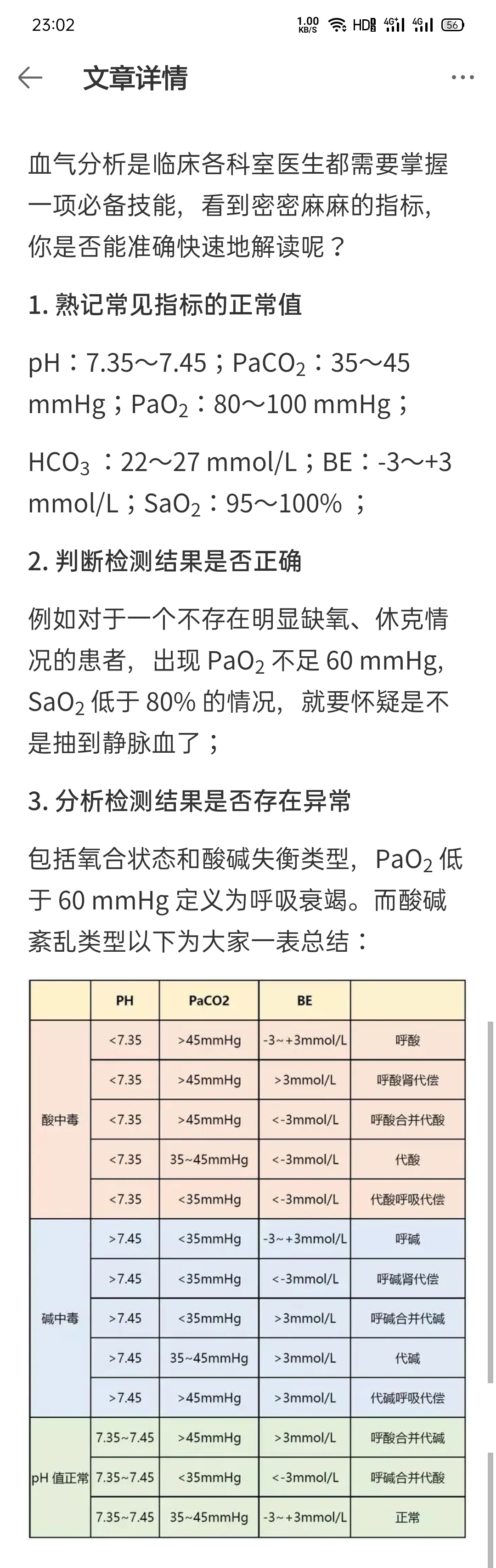 血气分析结果判读