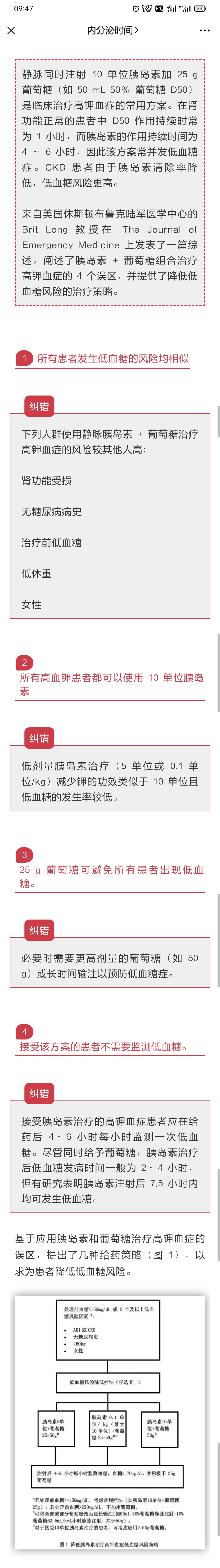 降钾「葡萄糖 + 胰岛素」组合使用注意