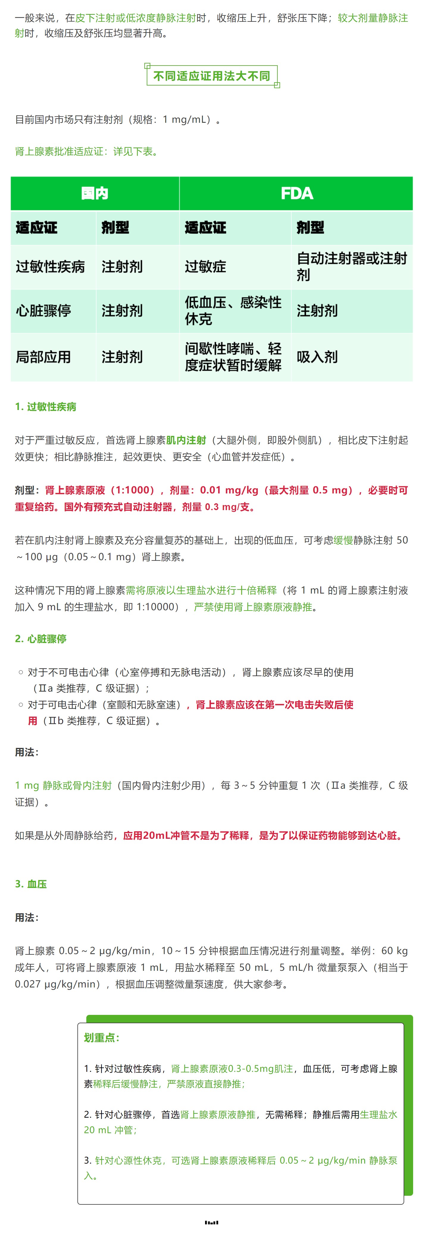 肾上腺素在过敏性休克/心脏骤停/升血压时的用法