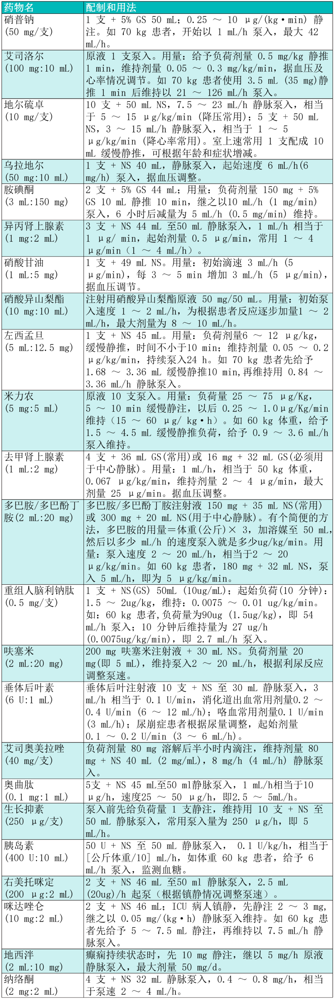 泵入:去甲肾上腺素注射液18mg+41mL 5%葡萄糖(常用)或36mg+32mL